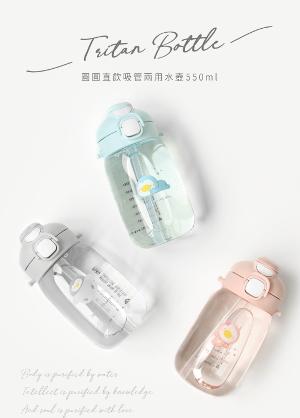 PUKU藍色企鵝 圓圓直飲吸管兩用揹帶隨身水壺550ml